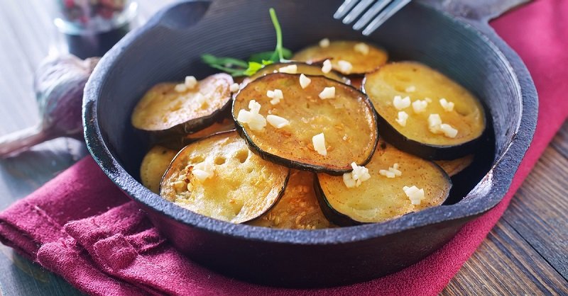 - Затем в новой порции растительного масла обжарь пропитанные взбитыми яйцами баклажаны. Сколько жарить баклажаны? Поджаривай партиями до золотистого цвета, по пять минут каждую.