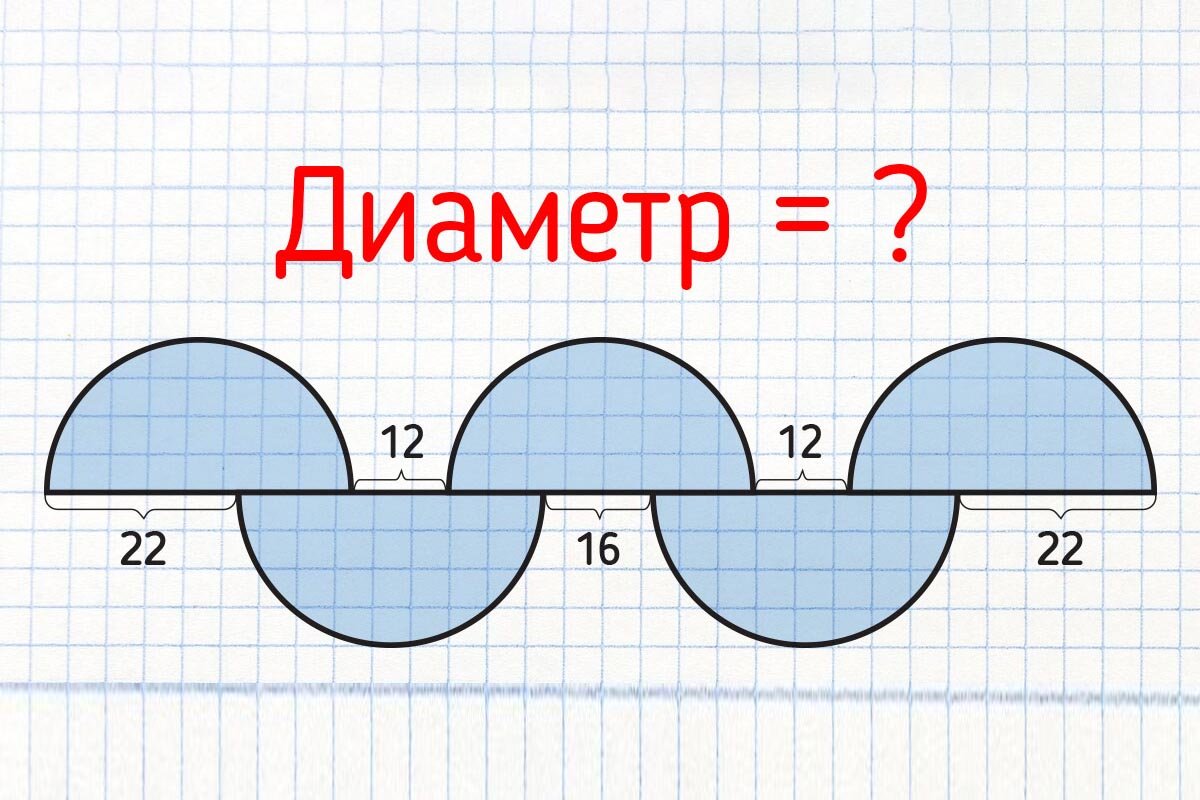 На первый взгляд кажется, что задача очень сложная. Но это только на первый взгляд. Всё, что нужно сделать, это найти диаметр полукруга. При этом все пять полукругов одинаковые. И известны нам лишь некоторые отрезки диаметра окружности. С этой задачей легко справится ученик старшей школы. А вот смогут ли решить эту задачу его родители, которые уже давно окончили школу? Проверим, как хорошо ты помнишь геометрию. Если ты уже знаешь правильный ответ, напиши его нам в комментариях. Ну а если задача вызвала у тебя некоторые сложности, то давай вместе разберемся с ее решением.