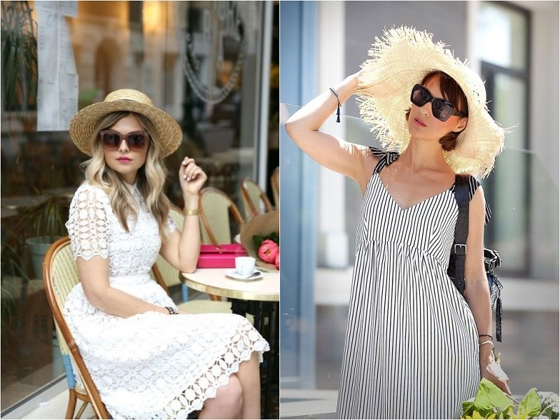 - Соломенная шляпа — самый летний головной убор. Смотрится очень изысканно, а с сочетании с платьями — элегантно и женственно. Любой наряд сразу приобретает романтичный настрой. Не стесняйся носить шляпу в знойные летние деньки: защитит кожу лица, плечи и волосы от негативного воздействия солнца.