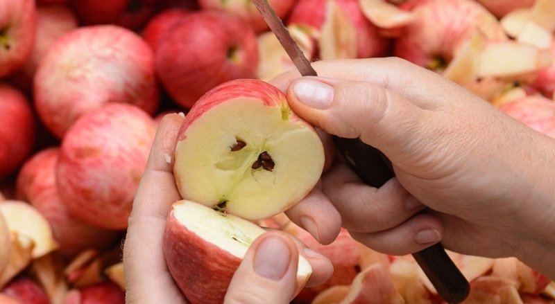 - Вымой и очисти яблоки. Нарежь их на небольшие кусочки.