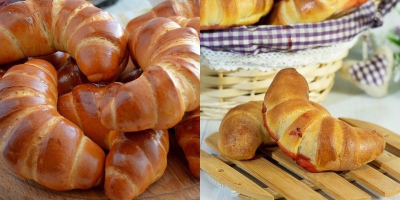 Теперь ты знаешь, как приготовить дрожжевые рогалики дома. Тесто как для для халы получается довольно густым при замесе, но расстаивается хорошо, а рогалики получаются очень мягкими и аппетитными.