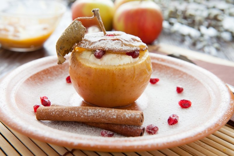 У печеных яблок очень аппетитный аромат и потрясающий вкус. Блюдо успешно заменяет вредные лакомства, такие как шоколадные конфеты, пирожные, печенье и другие опасные сладости.