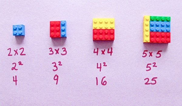 Детям сложно понимать абстрактное дробление воображаемой целой части. Гораздо легче это сделать, постепенно отделяя от целого кирпичика другие части с шипами. Так намного быстрее можно усвоить основные понятия и виды дробей. - Возведение в квадрат