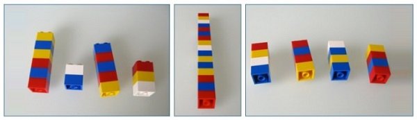 Ребенок складывает из конструктора башенку, потом учится делить ее на равные части, а заодно усваивает, как найти среднюю арифметическую величину.
