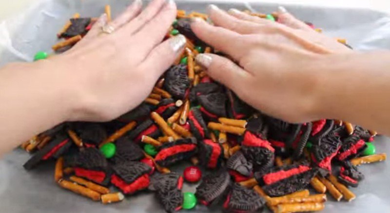 - Оставь печенье на 20 минут, чтобы шоколад застыл. Затем поломай плитку на маленькие кусочки.
