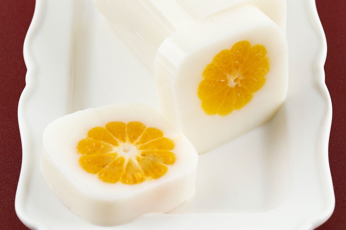 Кстати, десерт можно подать интересным образом, если найти глубокую форму (можно взять тетрапак) и поставить мандарины внутрь один на другой, насадив на шпажку. Затем остается только залить желе и дождаться готовности. В разрезе этот десерт неповторим!